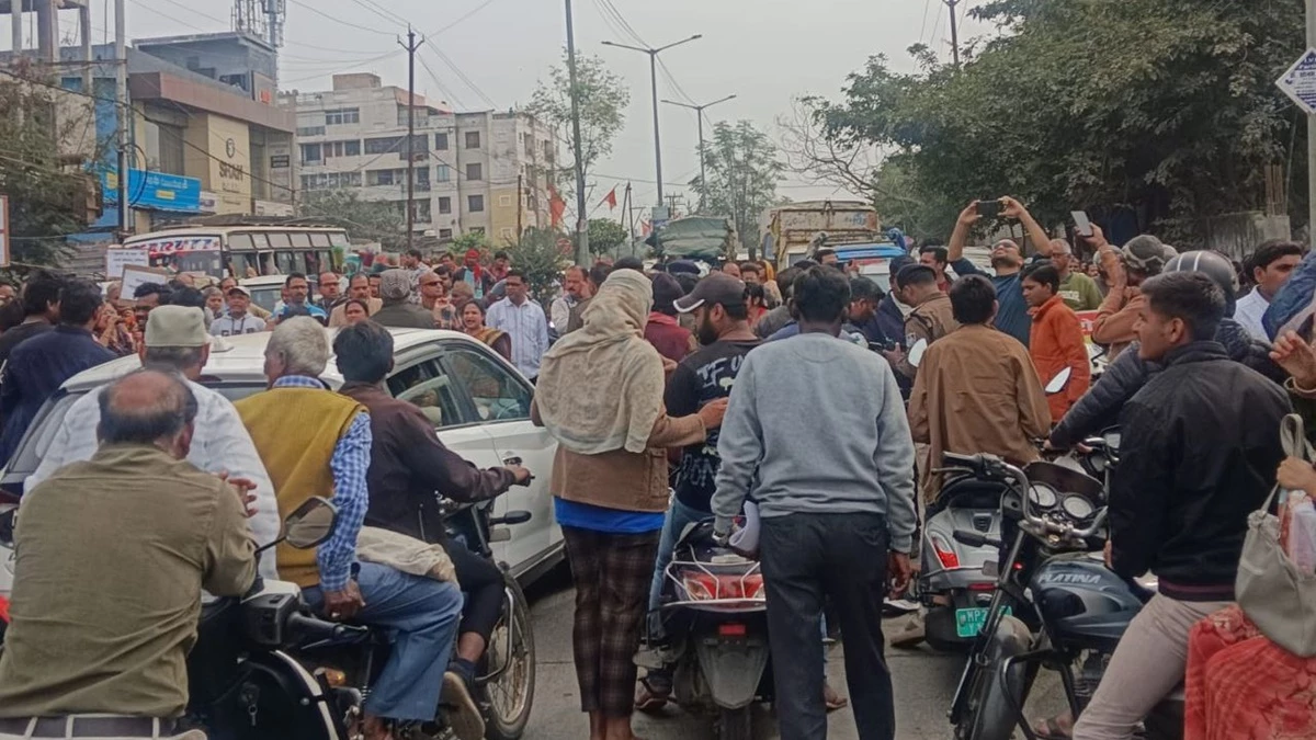 इसके कारण सड़क पर दोनों और वाहनों की कतार लग गई। क्षेत्र में शराब दुकान के विरोध में गत कुछ दिन से लगातार असंतोष सामने आ रहा था। पहले भी क्षेत्र की महिलाएं विरोध में सड़क पर उतरी थीं और प्रशासन को दुकान खोलने की अनुमति जारी नहीं करने को लेकर चेतावनी दी थी। लोगों का कहना है कि यह रहवासी क्षेत्र है। शराब दुकान खोलने से असामाजिक गतिविधि बढ़ने की आशंका है।