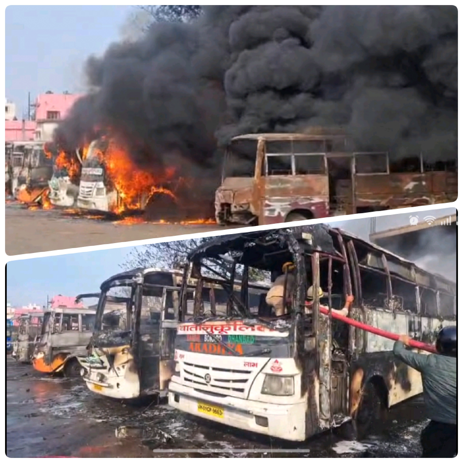🔥बस स्टैंड बना आग का अखाड़ा, रांची में 6 बसें धूं-धूं कर जलीं, बड़ा हादसा रांची के खादगढ़ा बस स्टैंड में गुरुवार को अचानक आग लगने से अफरा-तफरी मच गई। बस स्टैंड परिसर में खड़ी बसों से धुआं उठता देख लोग घबरा गए। कुछ ही मिनटों में आग ने छह बसों को अपनी चपेट में ले लिया।